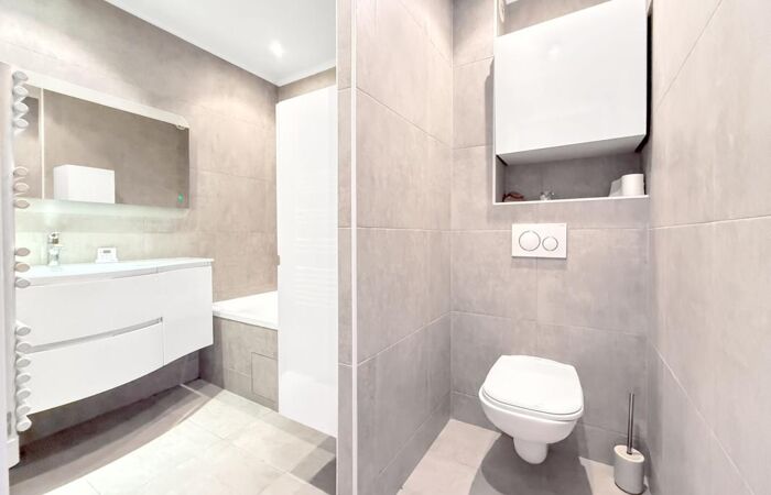 Dans une copropriété sécurisée avec gardien le jour et un agent de securité la nuit, divers commerces, café, supérette, terrain de loisirs et espace santé (pharmacie, medecin, kinésithérapeute, infirmiers)