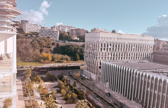 OASIS - 33 rue Emmanuel Grout - 06200 NICE Au cœur de la technopole Nice Meridia- Ecovallée, dans un immeuble neuf au 9ème étage. Très bel appartement de 3 pièces principales de 64 m2. Vide. Comprenant : une vaste entrée avec placard, un séjour de 23 m2, deux chambres, une salle de bains et un WC avec lave-mains. Belle terrasse d’angle de 25 m2, surplombant un très grand jardin public aménagé offrant une vue plein Sud dégagée jusqu’à la mer et procurant une agréable sensation d’ouverture et de calme. Situé au dernier étage, l’appartement dispose d’un accès direct depuisles parties communes, par ascenseur ou escalier, au rooftop paysager de la résidence, aménagé avec végétation. Tramway à 300 m qui relie l’aéroport au cœur de la ville. Accès rapide aux grands axes routiers A8 et voie rapide. Aéroport à 10 minutes en tramway et 5 minutes en voiture. Volets roulants électriques. Fibre. Eau chaude et chauffage par réseau de chaleur urbain, inclus dans les charges. Parking en sous-sol, idéalement situé au pied de la cage d’ascenseur de l’appartement. WWW.IMMOBILIEREROSELAND.FR